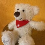 Der kleine PENYA Schmuse-Eisbär, hergestellt in Oberfranken, freut sich schon auf den ersten liebevollen Kuschelkontakt.